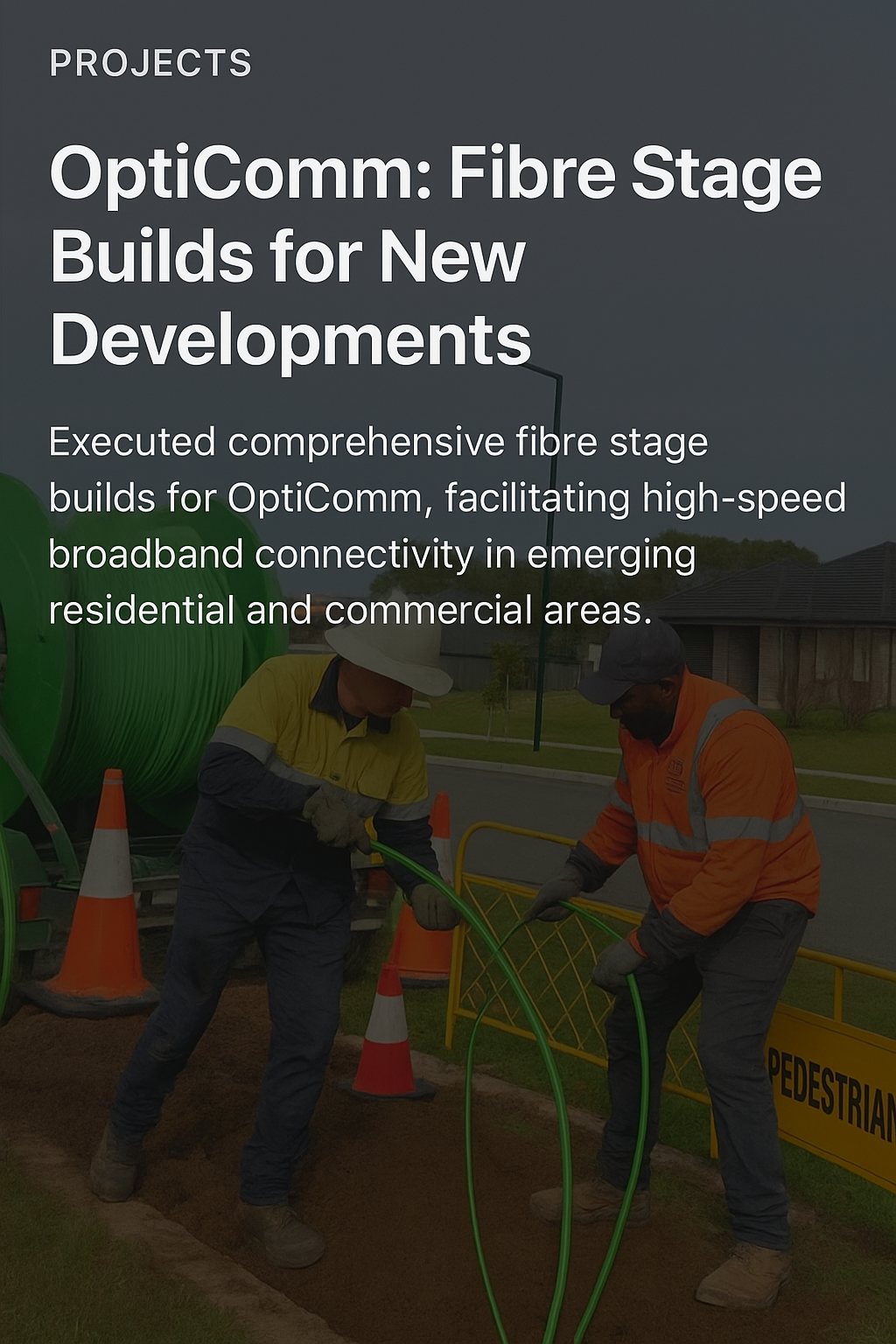 We deliver end-to-end connectivity solutions — from underground pit & pipe construction, fibre hauling, blowing, splicing, and testing, to equipment commissioning and system integration. Our expertise spans NBN projects, government facilities, education institutions, commercial developments, and industrial networks.